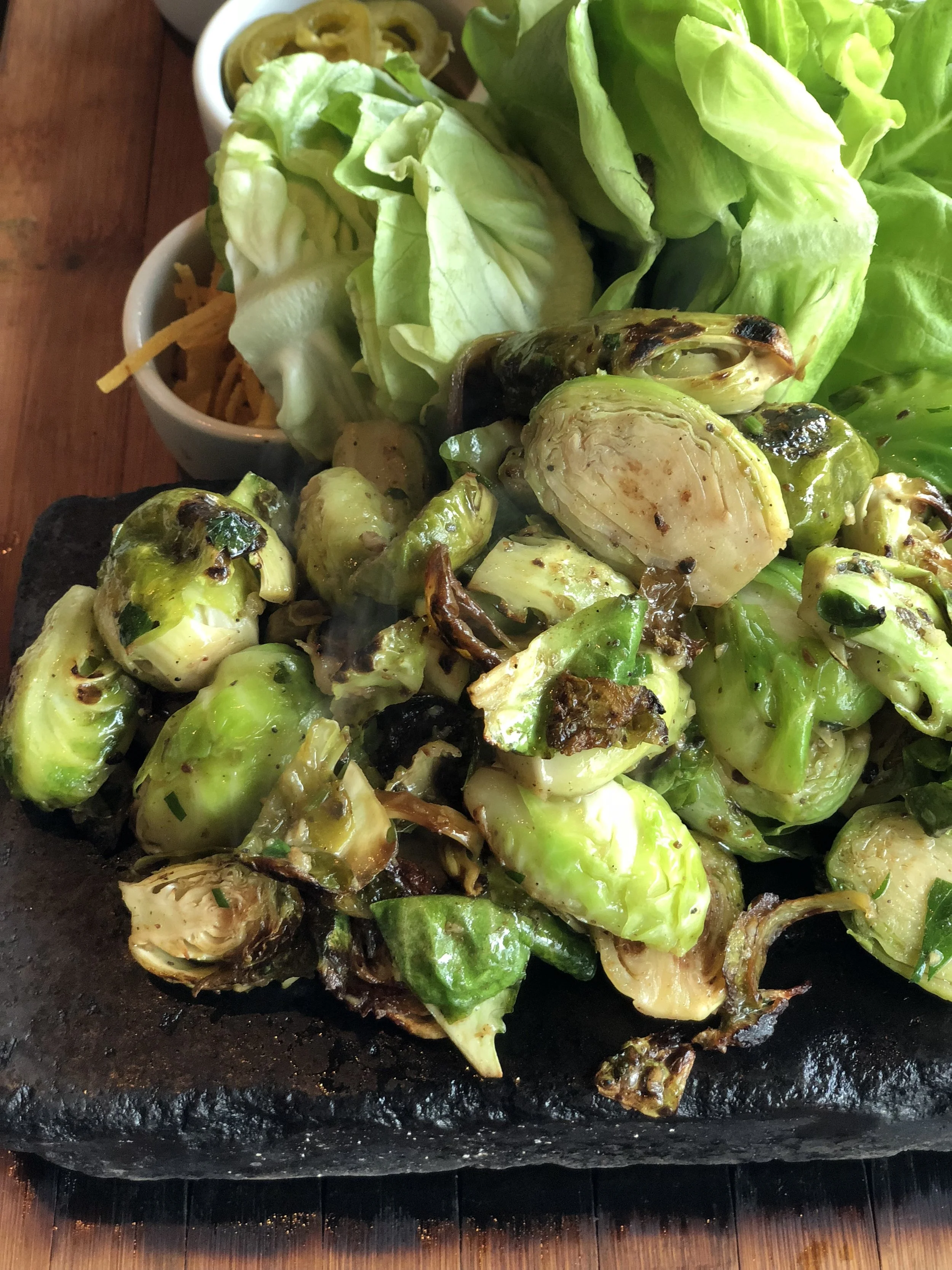✧ What to order: I think my favorite all-time item on their menu is the Korean Fried Broccoli. Oh, is it delicious. If you're looking for something that's not a side (lol) I have to recommend the Brussels Sprouts Tacos. First of all, they come out sizzling — I definitely had a moment of where am I, a Chili's? moment — on top of a brick of lava. Whoa. Then there's a giant array of toppings for your bibb lettuce base — cashew sour cream, guac, pickled onions, radishes, jalapenos, and these cute, teeny-tiny little tortilla strips. A definite if you love vegan-mexican food.